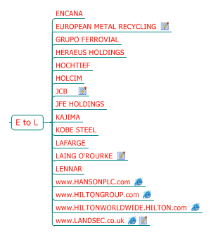 ENCANA EUROPEAN METAL RECYCLING GRUPO FERROVIAL HERAEUS HOLDINGS HOCHTIEF HOLCIM JCB   JFE HOLDINGS KAJIMA KOBE STEEL LAFARGE LAING O'ROURKE LENNAR http://Www.HANSONPLC.com http://Www.HILTONGROUP.com http://www.HILTONWORLDWIDE.HILTON.com www.LANDSEC.co.uk