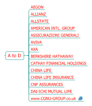 AEGON ALLIANZ ALLSTATE AMERICAN INTL. GROUP ASSICURAZIONI GENERALI AVIVA AXA BERKSHIRE HATHAWAY CATHAY FINANCIAL HOLDINGS CHINA LIFE CHINA LIFE INSURANCE CNP ASSURANCES DAI-ICHI MUTUAL LIFE http://Www.CGNU-GROUP.co.uk