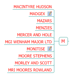 MACINTYRE HUDSON MADGEX MAZARS MENZIES MERCER AND HOLE MGI WENHAM MAJOR LTD MONITISE MOORE STEPHENS MORLEY AND SCOTT MRI MOORES ROWLAND